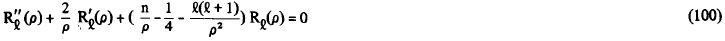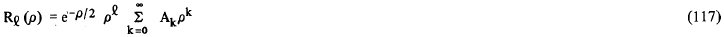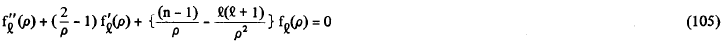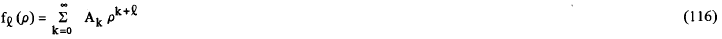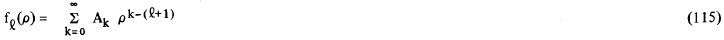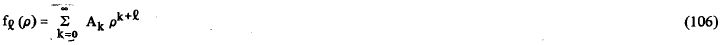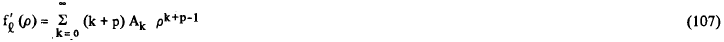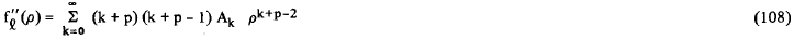 A função f(ρ) será definida precisamente, depois de acharmos um valor para o índice ρ e os valores dos coeficientes Ak. Para tal, nós começamos calculando f'l(ρ) e f''l(ρ), simplesmente achando as derivadas da eq. (106), isto é