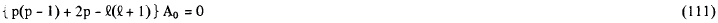 Sabendo que p = l, nós podemos usar este valor na eq. (109) e obter uma série infinita de potências de ρ. Para que a soma de todos os termos desta série seja nula, é necessário que cada coeficiente de uma dada potência de ρ, seja nulo. Assim sendo, para os dois primeiros coeficientes de menor potência de ρ nós teremos: