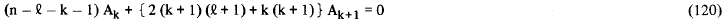 Analisando (118) nós observamos que se for possível conhecer A0 nós poderemos utilizar a fórmula de recorrência (120) e calcular A1, com A1, calcularemos A2 etc, até conhecermos todos os coeficientes Ak da série, para um valor qualquer de k. Porém, como a solução dada pela equação (117) deve ser finita, então a série que nela aparece deve ser finita; analisando (120) nós vemos que isto é possível desde que tenhamos