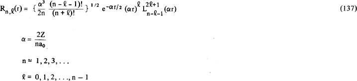 Se compararmos as diferentes funções Rn,l, nós veremos que (a não ser ρ a uma constante multiplicativa envolvendo A0) estas funções diferem muito pouco dos polinômios associados de Laguerre, L( n - l - 1 , 2l + 1 , ρ), que podem ser definidos pela seguinte fórmula geral de Rodrigues