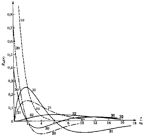 A função R(r) é a solução da equação diferencial (64) e nos dá a dependência radial da função de onda do átomo de hidrogênio. Se nesta equação substituirmos a constante b pelo seu valor, então (64) pode ser reescrita como