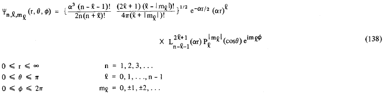 Inicialmente nós havíamos definido Ψ como um produto das funções R, Θ e Φ. Sendo assim, fazendo uso de (68), (95) e (137), nós podemos definir a função de onda eletrônica do átomo de hidrogênio, como: