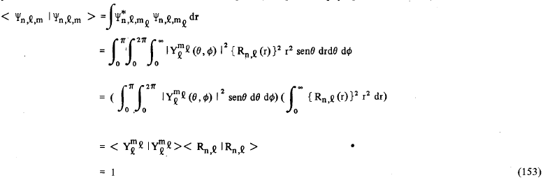 e calcular o produto escalar impondo a condição de que < Ψ2px | Ψ2py> = 1. Assim, lembrando que as funções Ψn,l,m. São ortonormalizadas, isto é