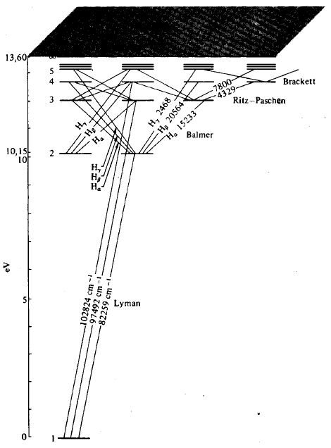 Fig. 7 - Níveis de energia do átomo de hidrogênio segundo a teoria de Schrödinger.